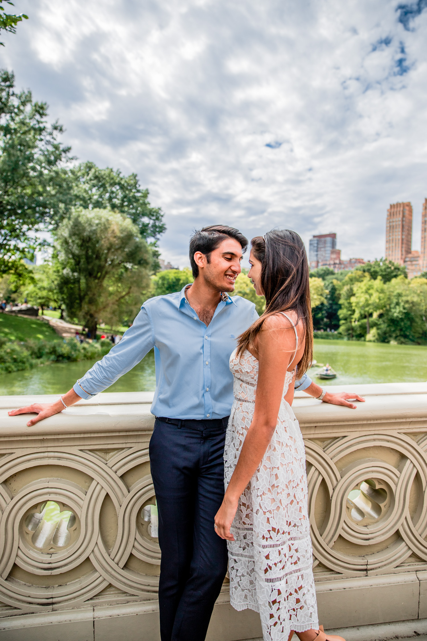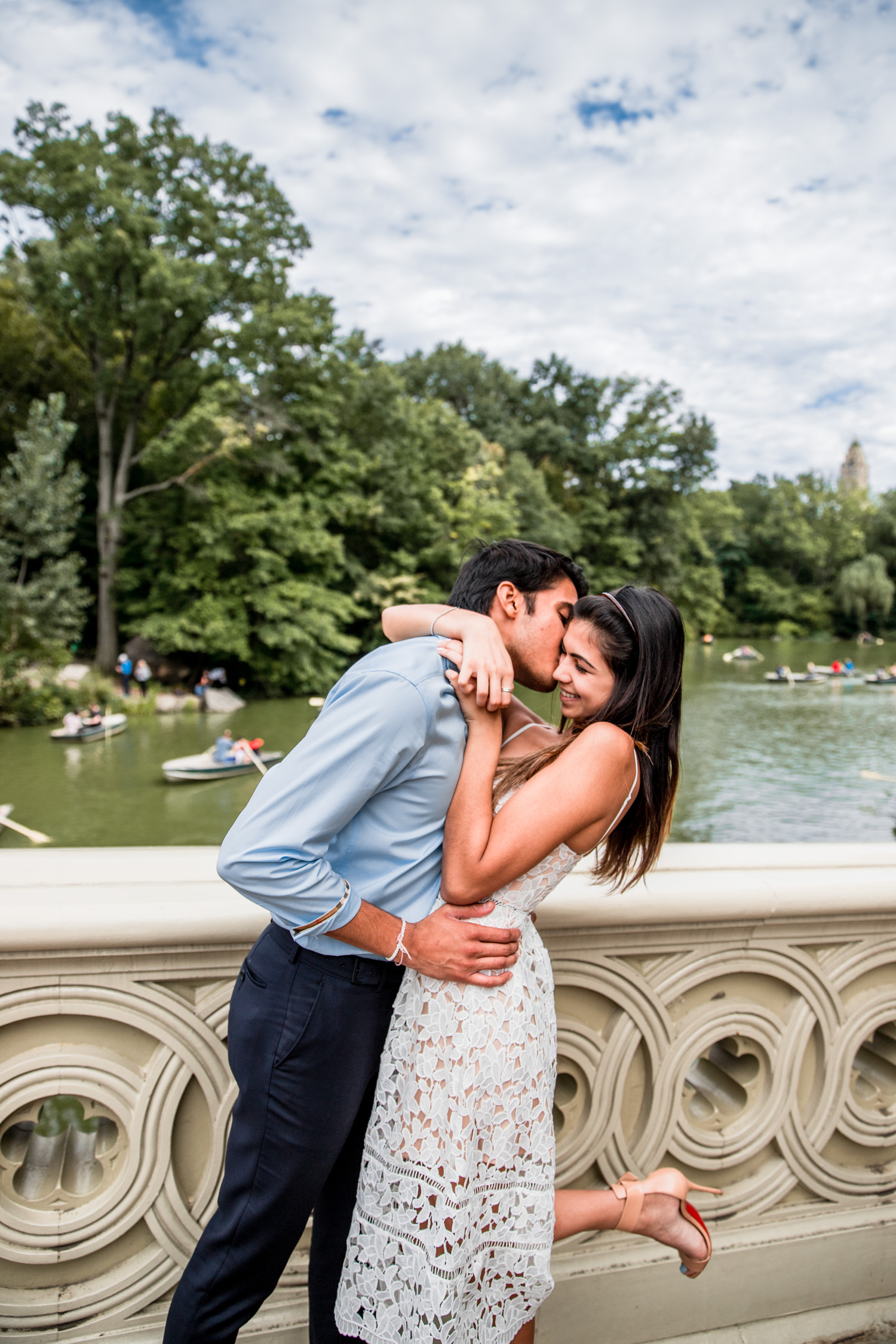 NYC engagement photoshoot in Bow Bridge. Couple picnic photography. Alsenio Photo